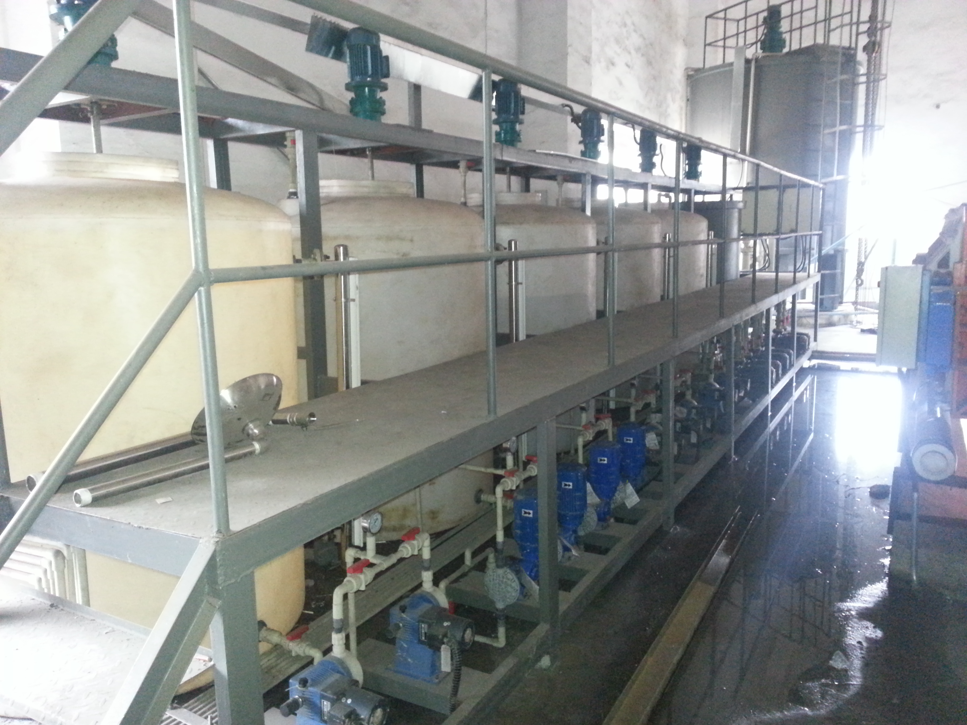 本工程中采用混凝沉法工艺,对废水进行混凝沉淀处理,沉淀池上清液排入出水PH回调池中和后达标排放。沉淀物经污泥泵回流至中和池和进入板框压滤机的进处进一步浓缩后外运。该废水是弱酸性的高盐废水,处理工艺的主要针对物质是重金属离子、酸根、卤族离子和固体颗粒物。所以根据废水特点,设计了中和、反应及混凝沉淀的工艺化学过程。